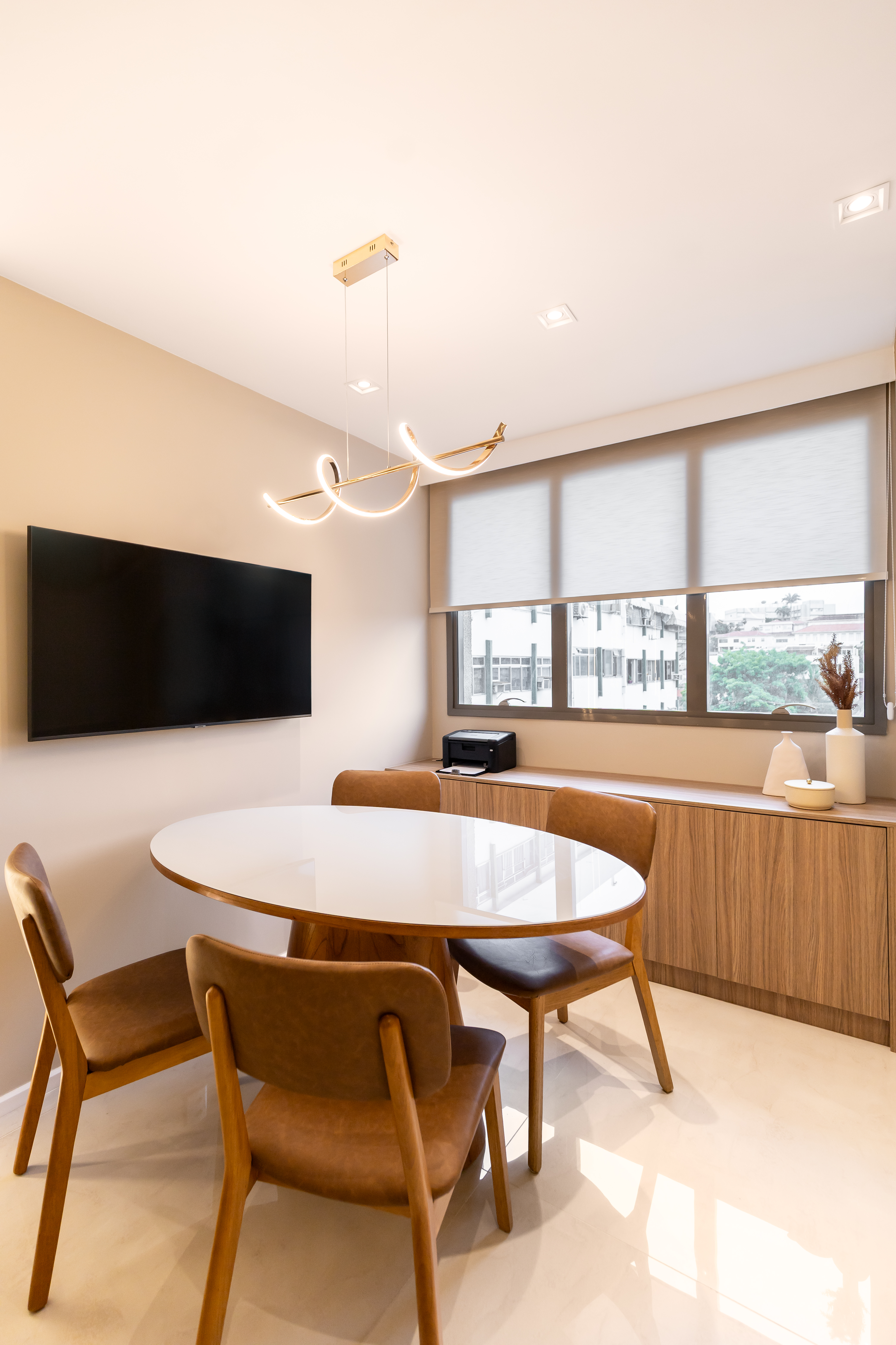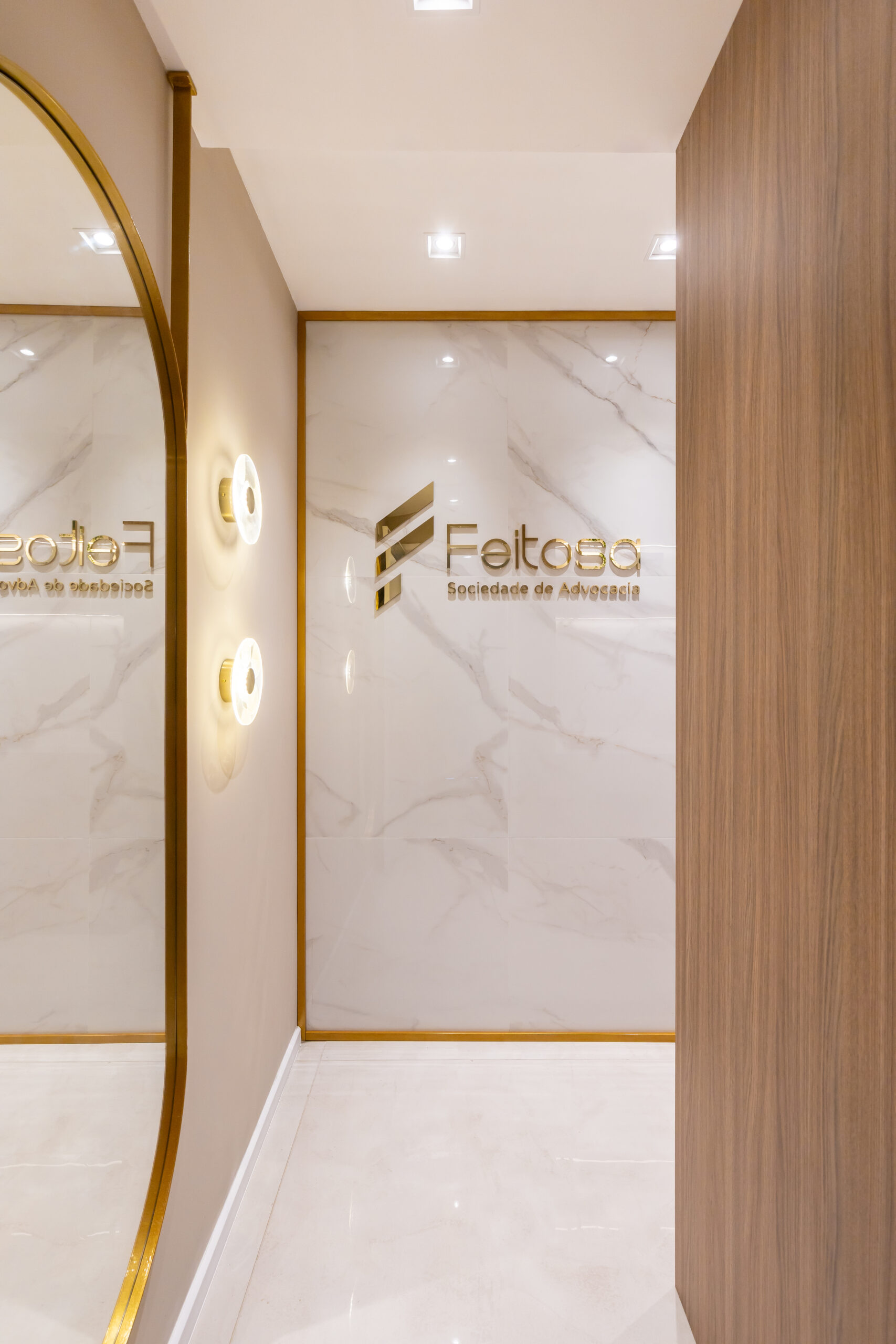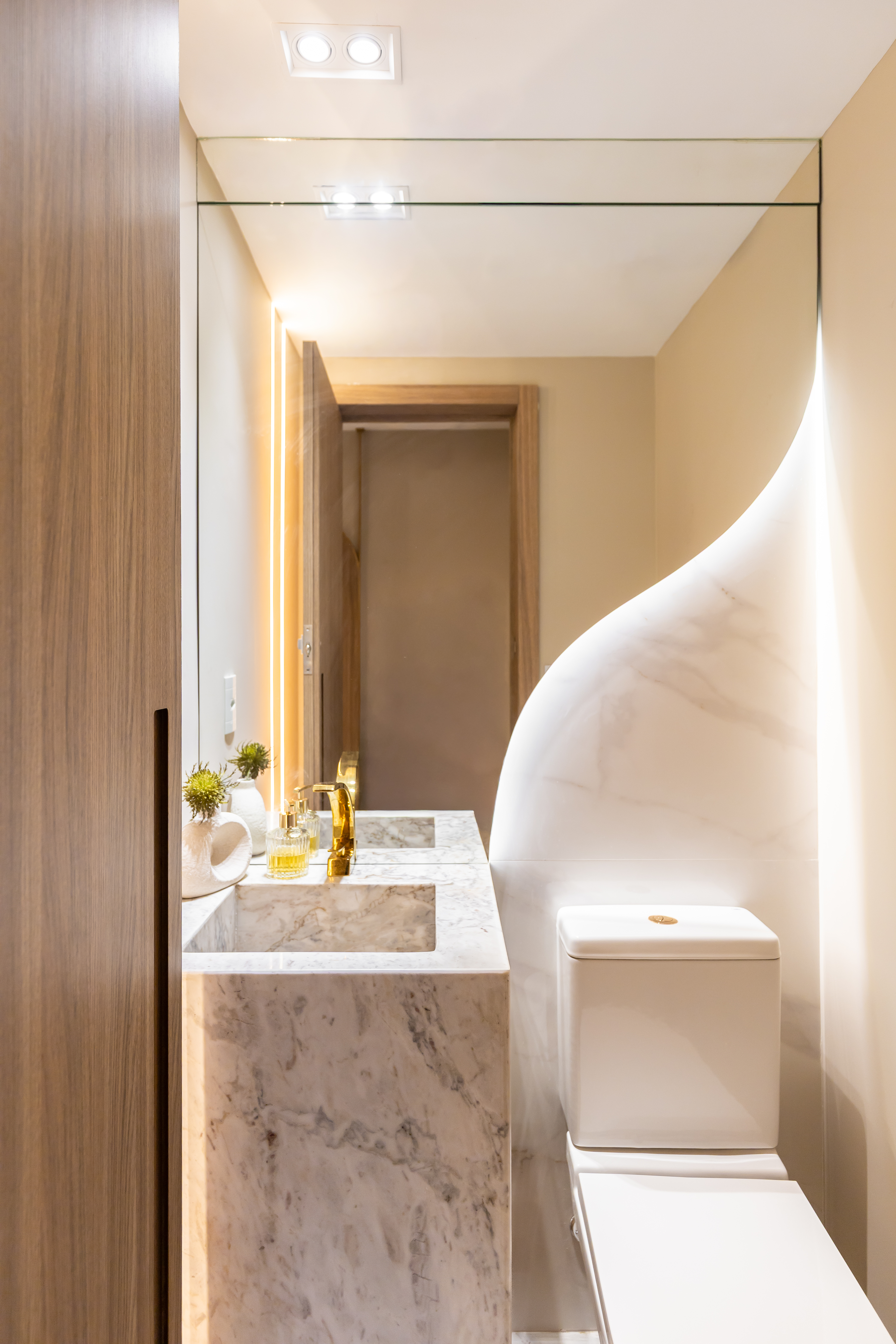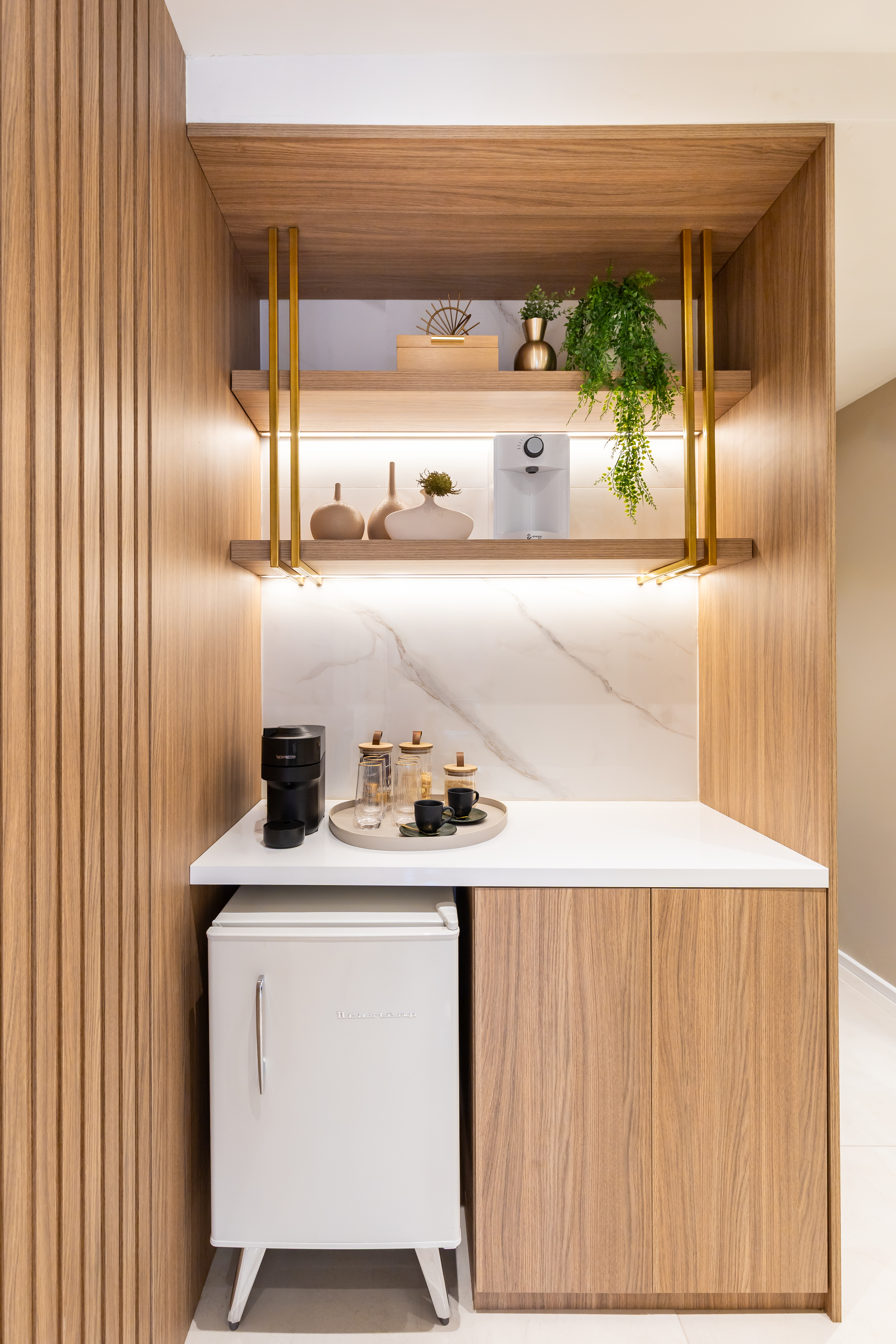 Do lavabo sofisticado com mármore e detalhes em dourado à copa aconchegante com estação de café, porque uma boa conversa muitas vezes começa com um café. Do escritório integrado, com iluminação quente e materiais nobres, à sala de reunião intimista onde decisões importantes ganham o ambiente que merecem.